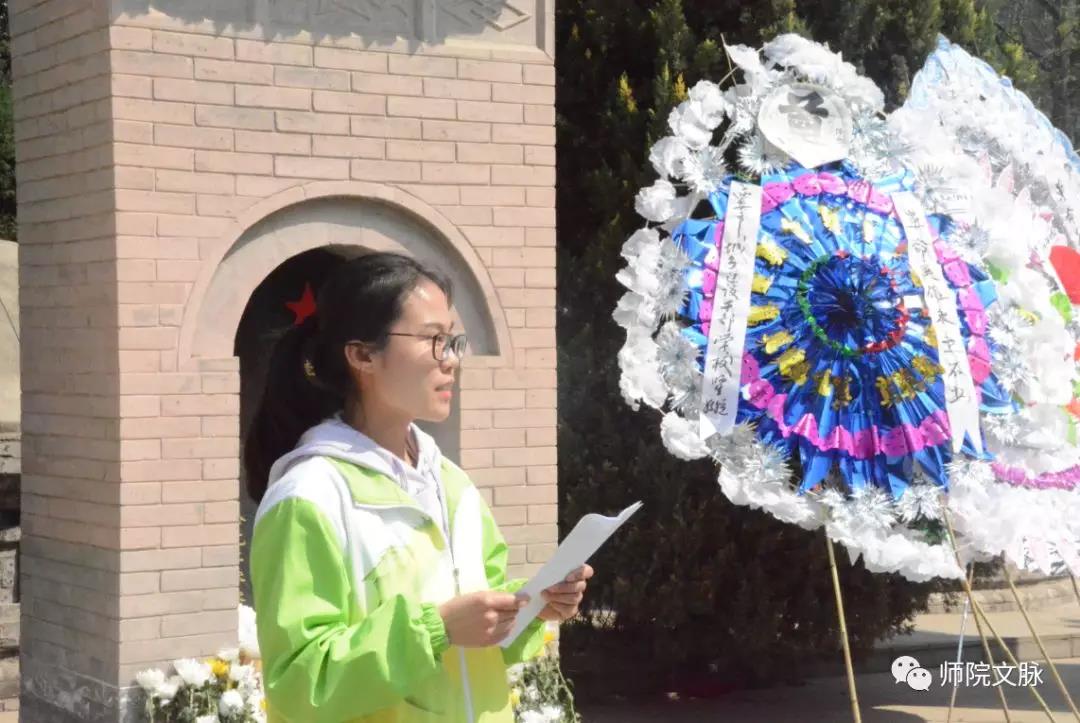 活动中,全体党员整齐列队,向革命先烈陵墓肃立默哀并鞠躬致敬,表达了对革命烈士的深深哀悼。2016级汉语言文学专业李霞同学作为预备党员代表发言。她表达了对英烈的衷思,表示过去的历史,我们不能遗忘,烈士们的高尚品质永远值得我们弘扬和传颂。作为新时代的新青年,更应该继承烈士的精神,把爱国之情,报国之志,化为报国之行,用我们的汗水、智慧,甚至是生命,努力学习和工作,为中国经济建设和社会稳定贡献自己的力量!