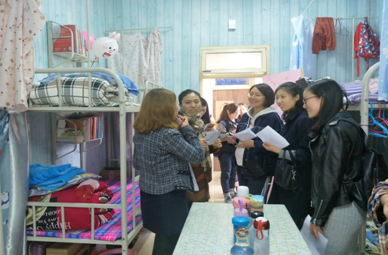 本次大赛决赛分为现场考察和设计讲解两个阶段进行。11月1日,由中文系党总支副书记孔养涛和五名辅导员老师组成的评审团进入学生宿舍,对进入决赛的九个参赛宿舍进行了考察评比打分。在评比过程中,评审团仔细察看了参赛宿舍的装扮效果,认真询问了同学们的设计初衷和文化内涵。