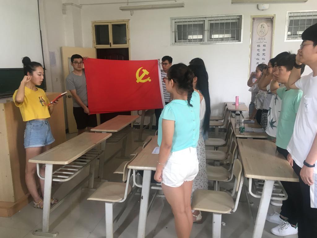 今年新发展的12名学生党员在党旗下庄严宣誓,表示了愿意承担政治责任、对党坚定信念和为党的事业奋斗终身的决心。新党员的加入,为中文系党组织建设注入的新鲜血液,增添了新生力量。