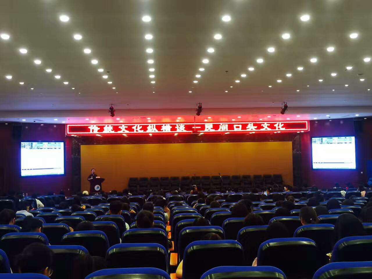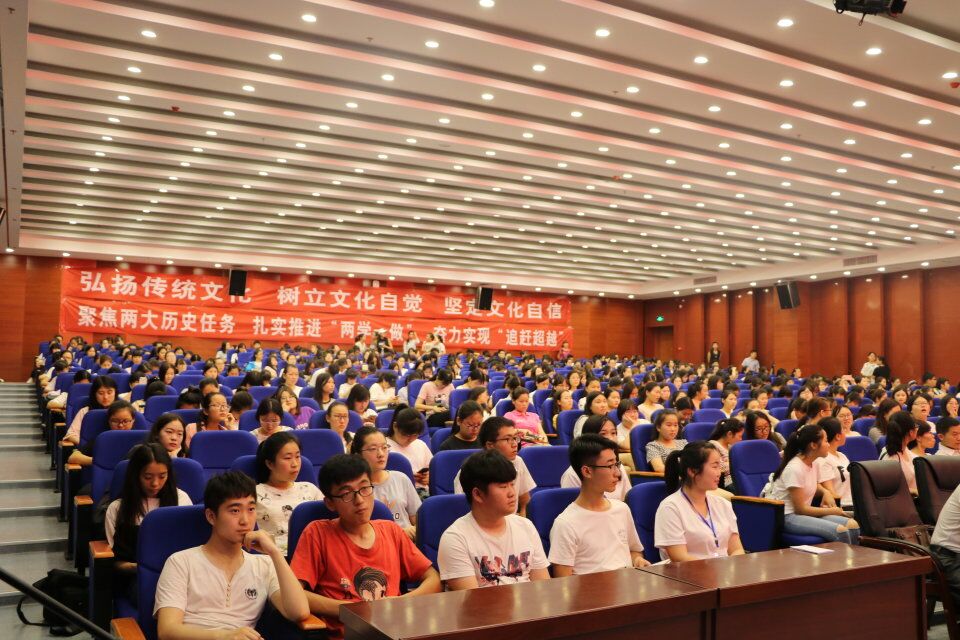 6月7日下午,由学校语言文字工作委员会指导、党委学工部主办、中国语言文学系承办的“传统文化纵横谈”首场活动在校图书馆学术报告厅隆重举行。校党委副书记栾高明、中文系全体教师党员及校内外的400余名学生参加活动。活动由中文系党总支副书记杨阳主持。