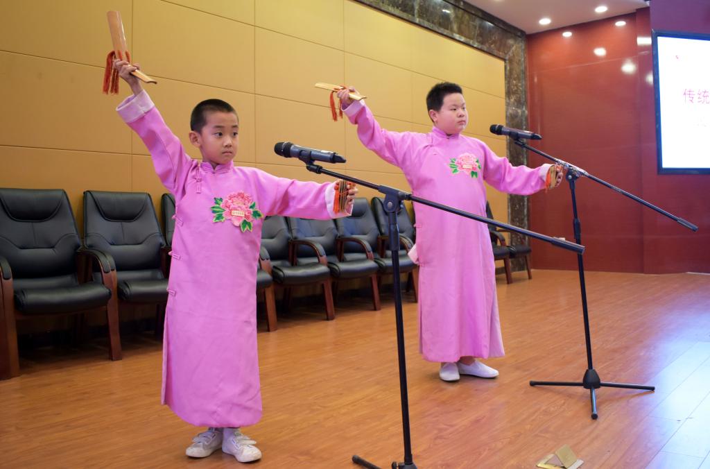 杨锦龙先生用幽默、风趣的语言介绍了评书、鼓乐、快板、相声等传统曲艺形式和各自的艺术特点。杨先生的弟子们现场表演了快板书《哪吒闹海》、相声《反正话》、陕西快书《口头语》。他们的精彩表演赢得了师生们的阵阵掌声,现场气氛热烈。