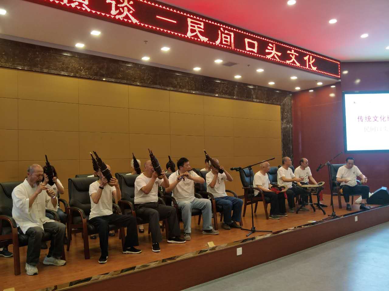 本次活动的主题为“民间口头文化”,邀请西安都城隍庙鼓乐社和陕西省曲艺家协会副秘书长杨锦龙先生,分别对“西安鼓乐”和传统曲艺的表现形式及艺术特点进行讲解和演示。
