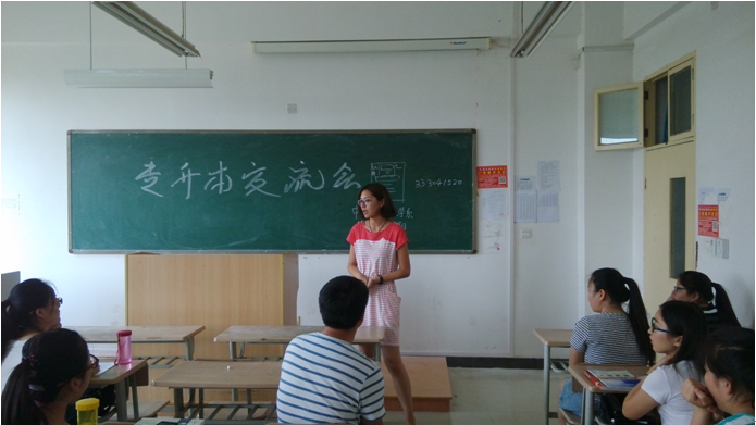 为了解答我系广大学生对于专升本的有关问题,使同学们能够掌握专升本信息,我系于6月19日上午九点在1号教学楼A303举行专升本经验交流会。由12级专升本学生代表和13级专科部分学生参加了会议。