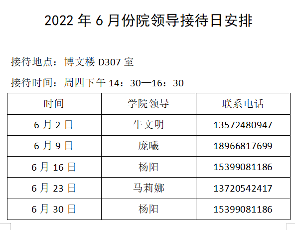文学院六月领导接待日安排