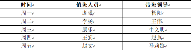4、值班人员因事不能按时到岗的,须提前告知系领导重新安排或自行调整。